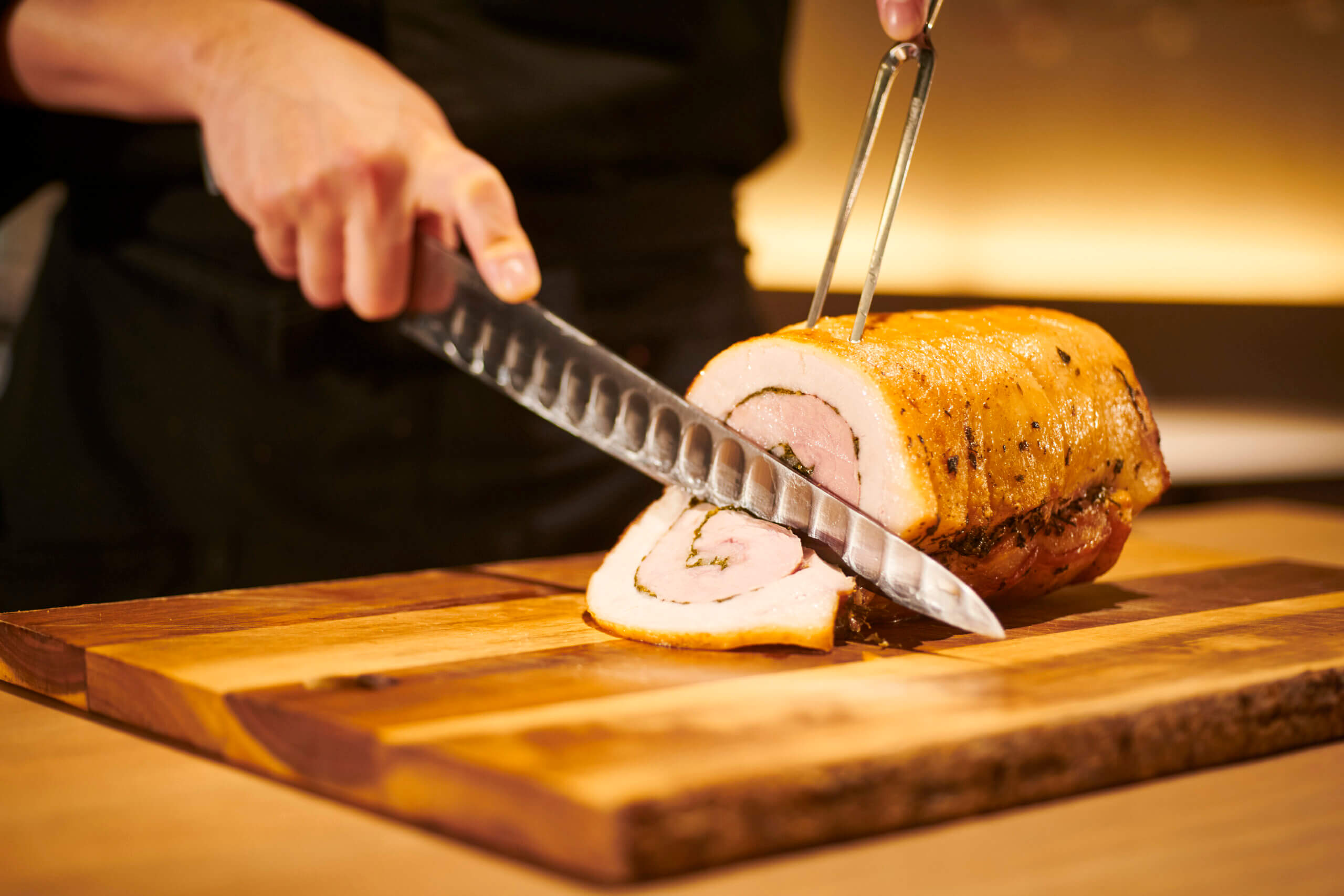 ワゴンでサーブする熱々のローストミートをペアリングでお楽しみ下さい。