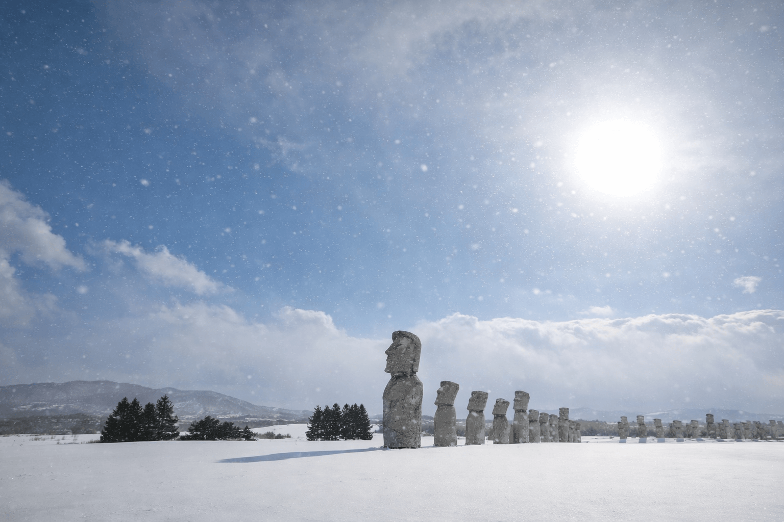 滝野スノーワールド、滝野霊園の雪のモアイ像・頭大仏殿、羊ヶ丘展望台など