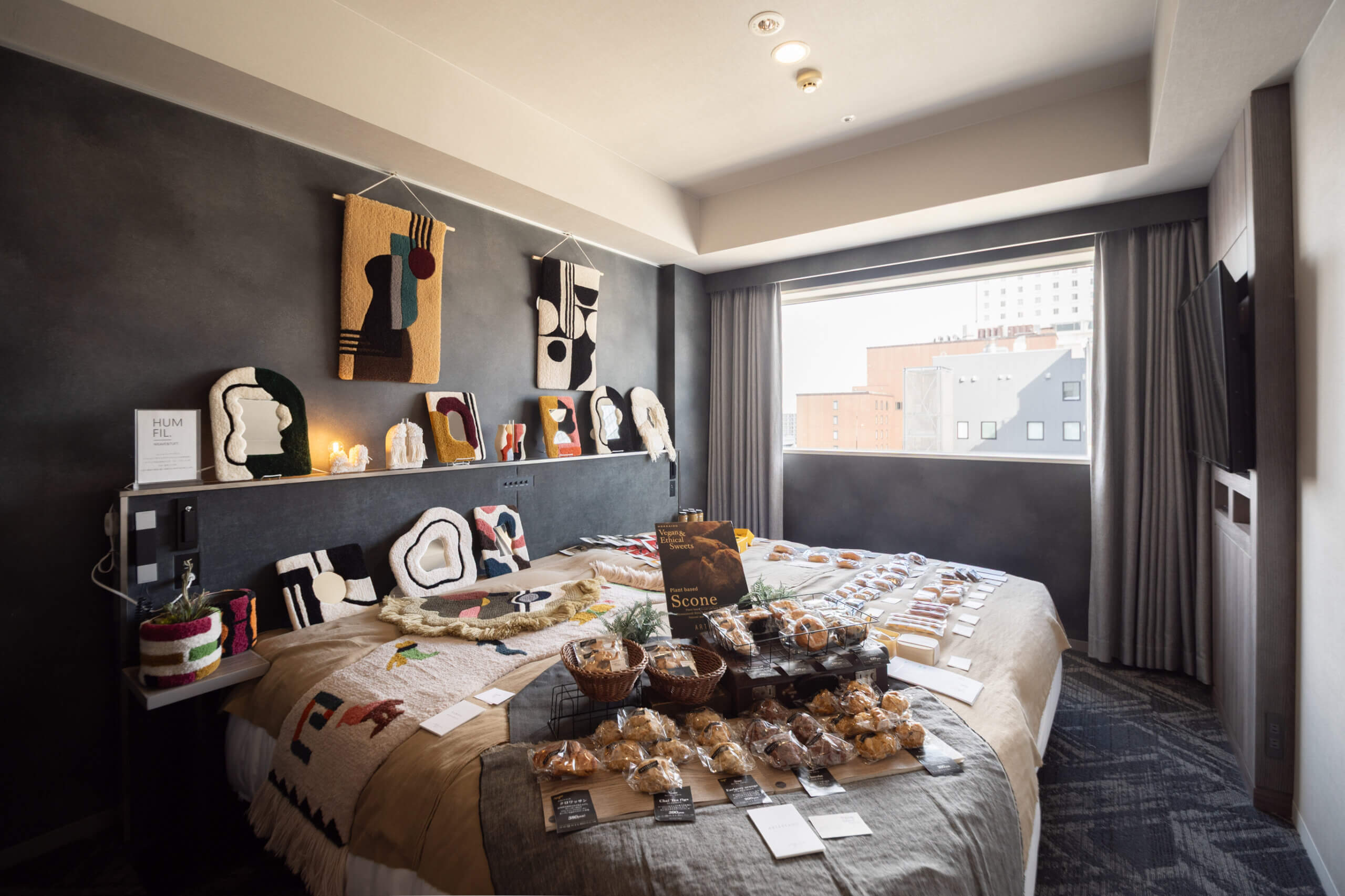 会場となるクロスホテル札幌13階では、客室がそれぞれアーティストのギャラリーに。